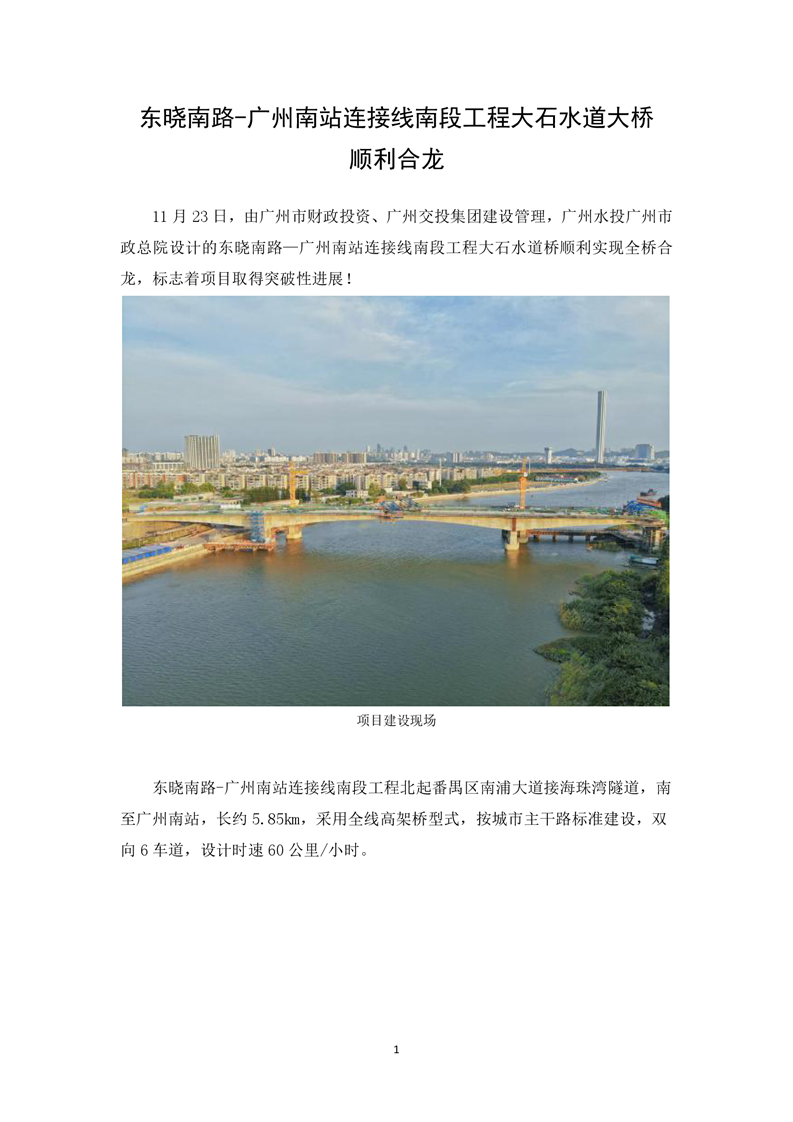 东晓南路-广州南站连接线南段工程大石水道大桥顺利合龙