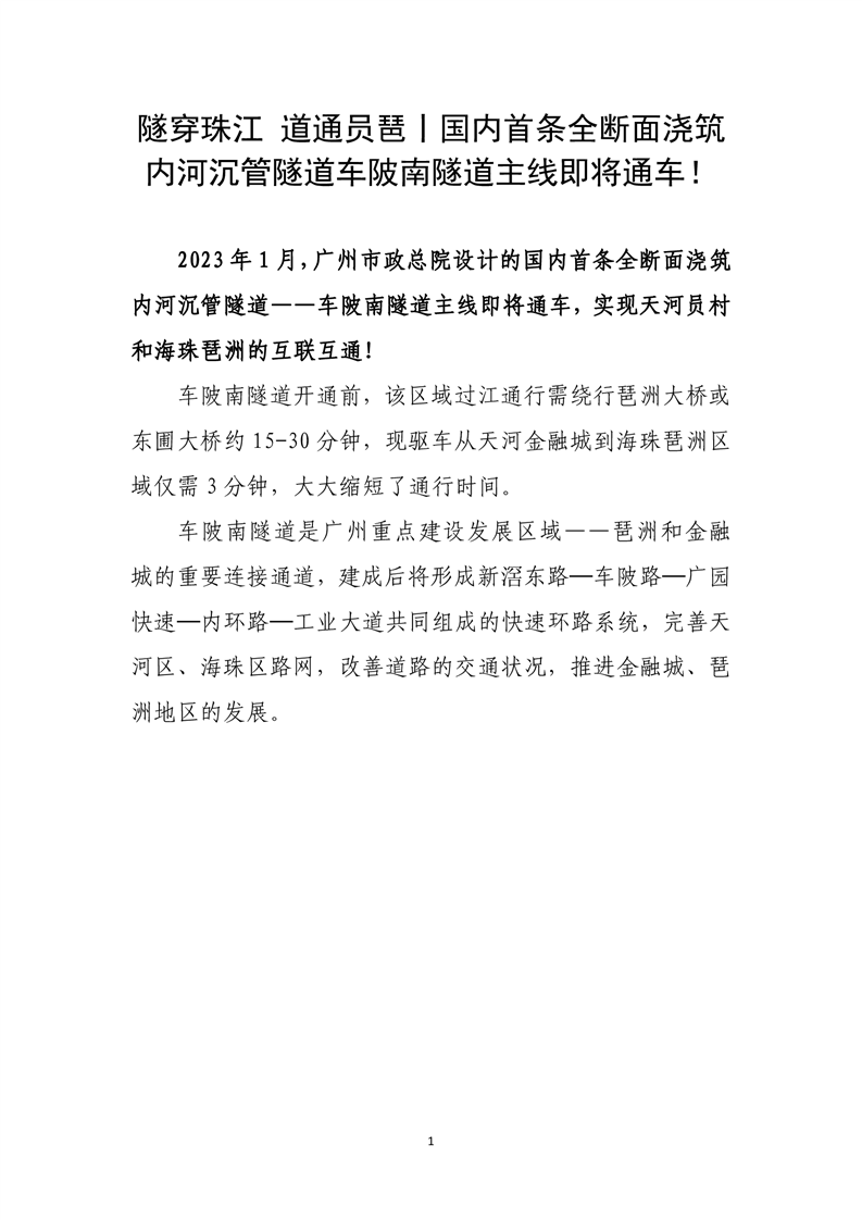隧穿珠江 道通员琶丨国内首条全断面浇筑内河沉管隧道车陂南隧道主线即将通车!