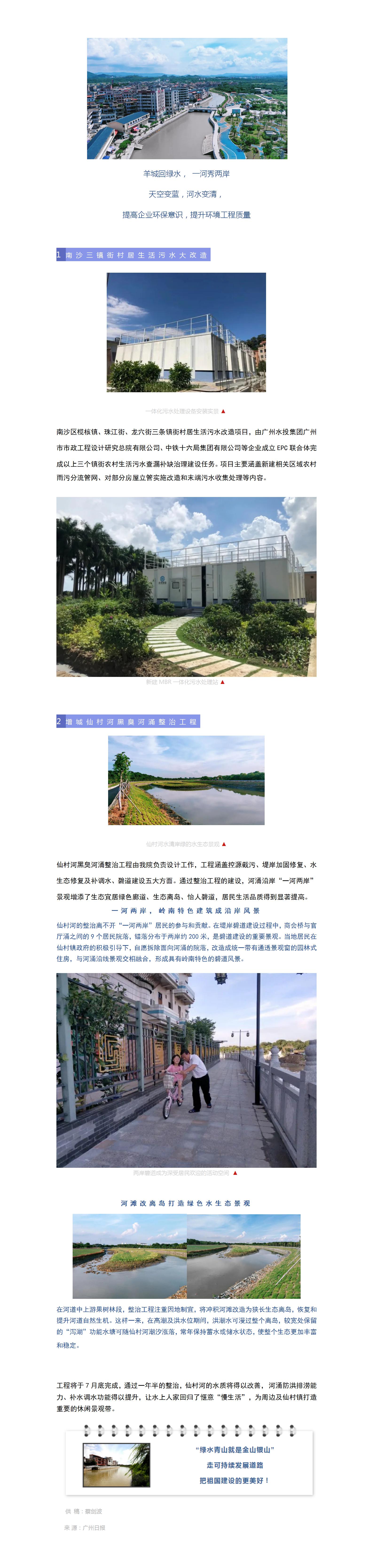 南沙三镇街村居生活污水大改造、增城仙村河黑臭河涌整治工程基本完成