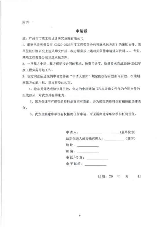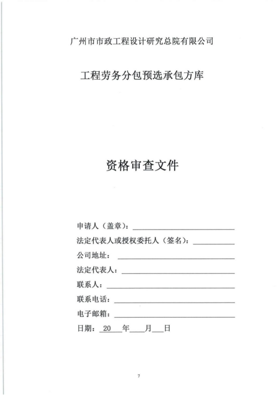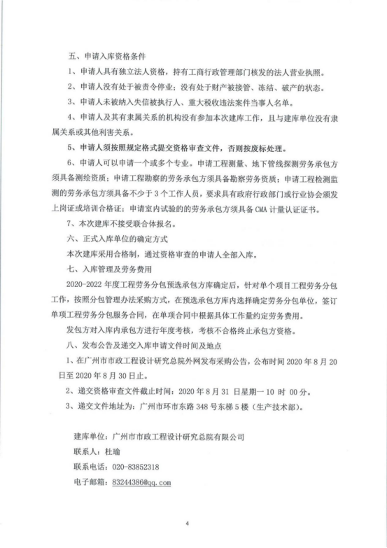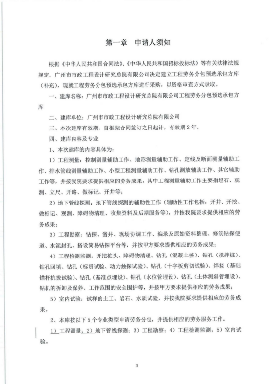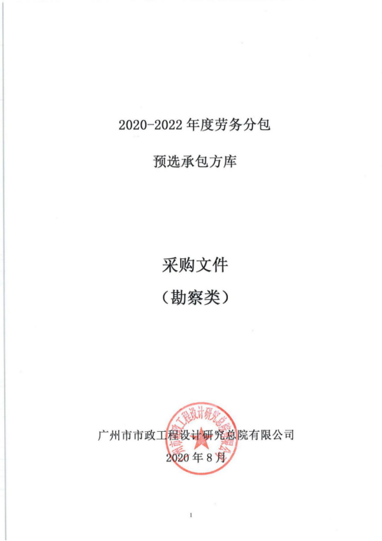 2020-2022年度工程劳务分包预选承包方库采购文件(勘察类)