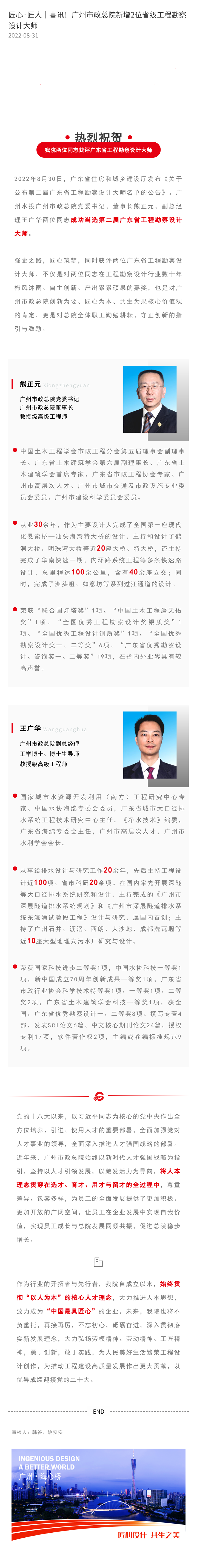 喜讯!广州市政总院新增2位省级工程勘察设计大师