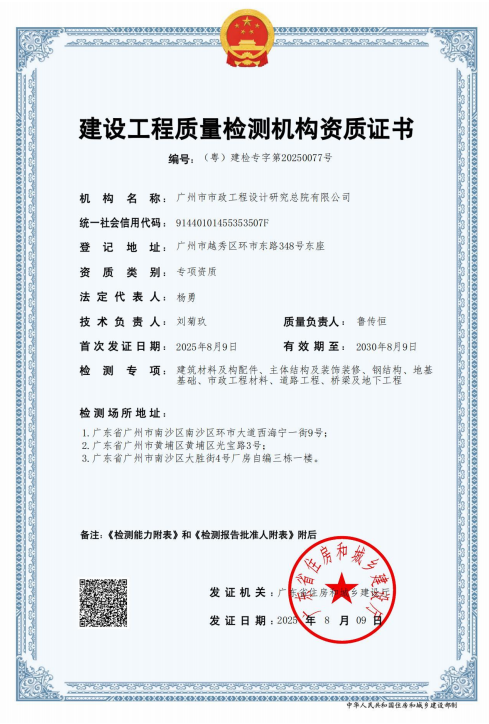 资质升级!广州市政总院获七大检测资质,行业实力再获认可