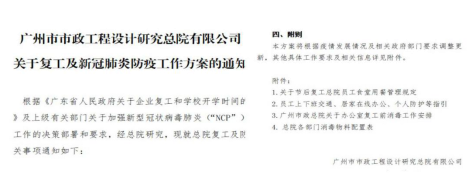 同时,针对复工复产后员工普遍关注的问题,如工作区域消毒、佩戴口罩、体温监测、错峰就餐等,管理支部书记曾少雄和党员温健麟连日奋战,收集材料,结合总院实际情况及时制定了详细的防疫措施和复工指南。