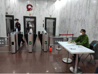 办公大楼实行封闭式管理,进出戴口罩、测量体温