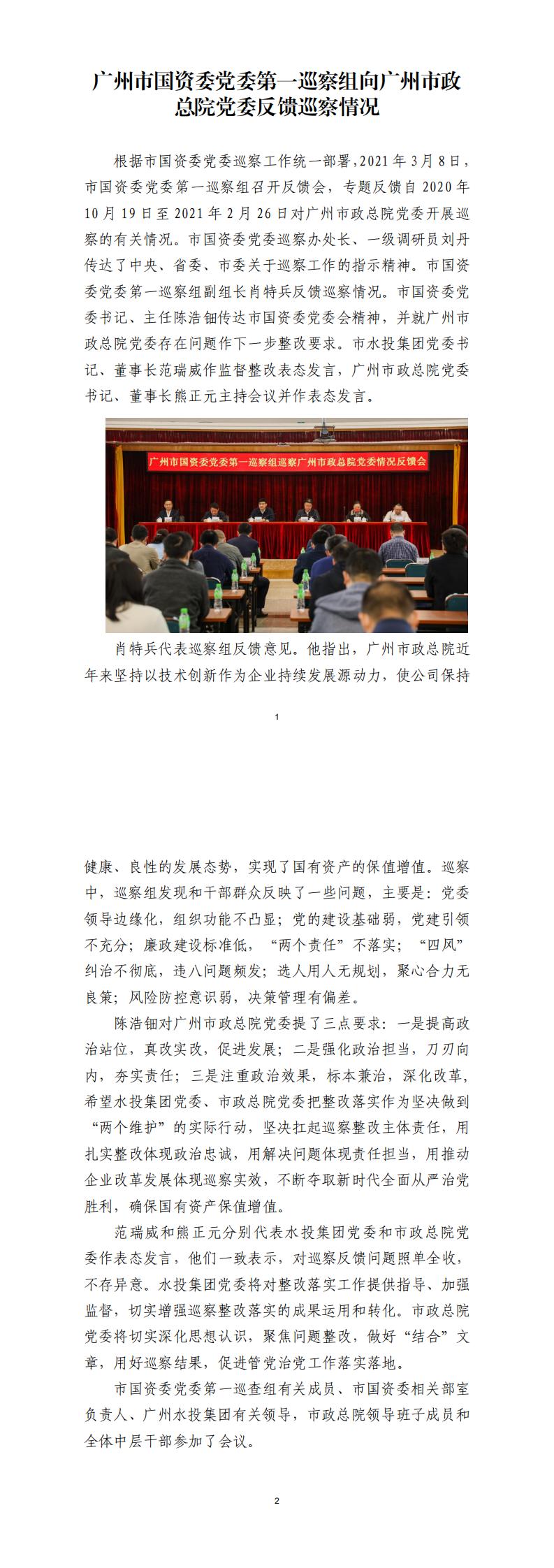 广州市国资委党委第一巡察组向广州市政总院党委反馈巡察情况