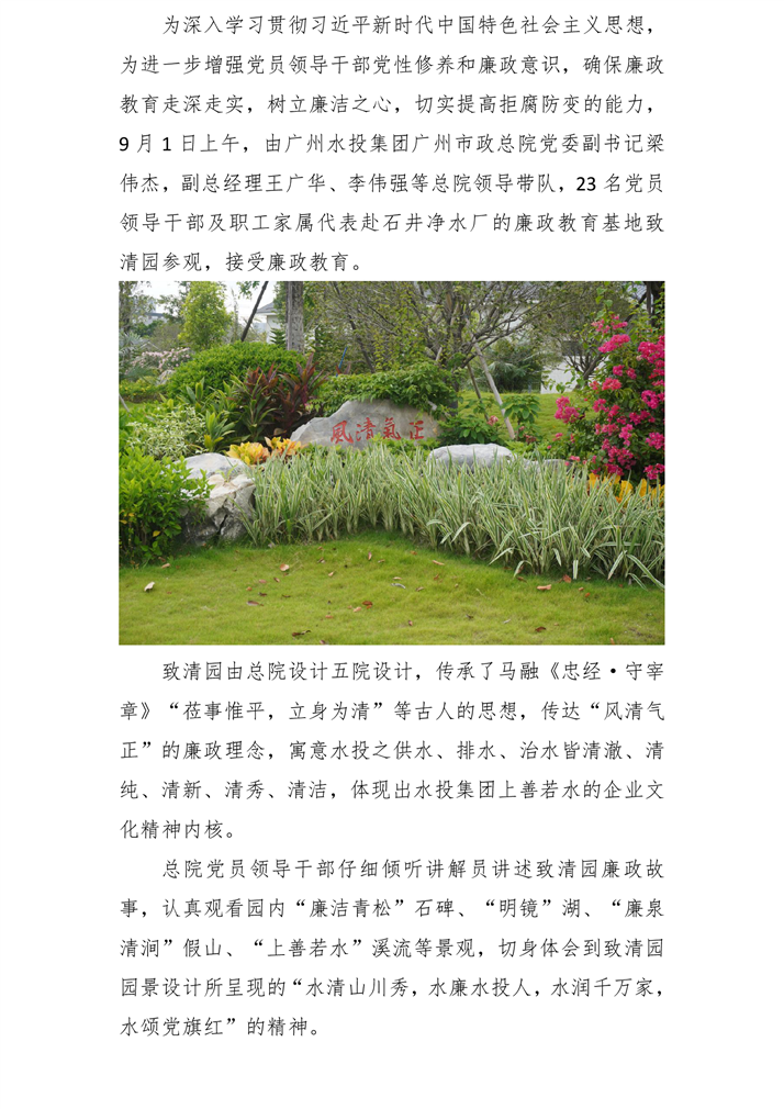 莅事惟平 立身惟清--广州水投集团广州市政总院党委组织党员领导干部参观致清园暨开展纪律教育月活动
