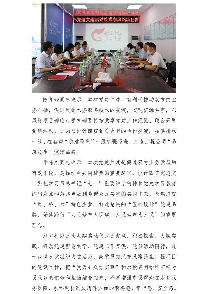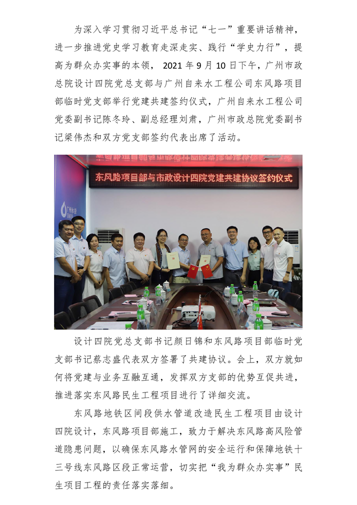 互融互通 互促共进——广州水投集团广州市政总院设计四院党总支部与广州自来水工程公司东风路项目部临时党支部举行党建共建签约仪式