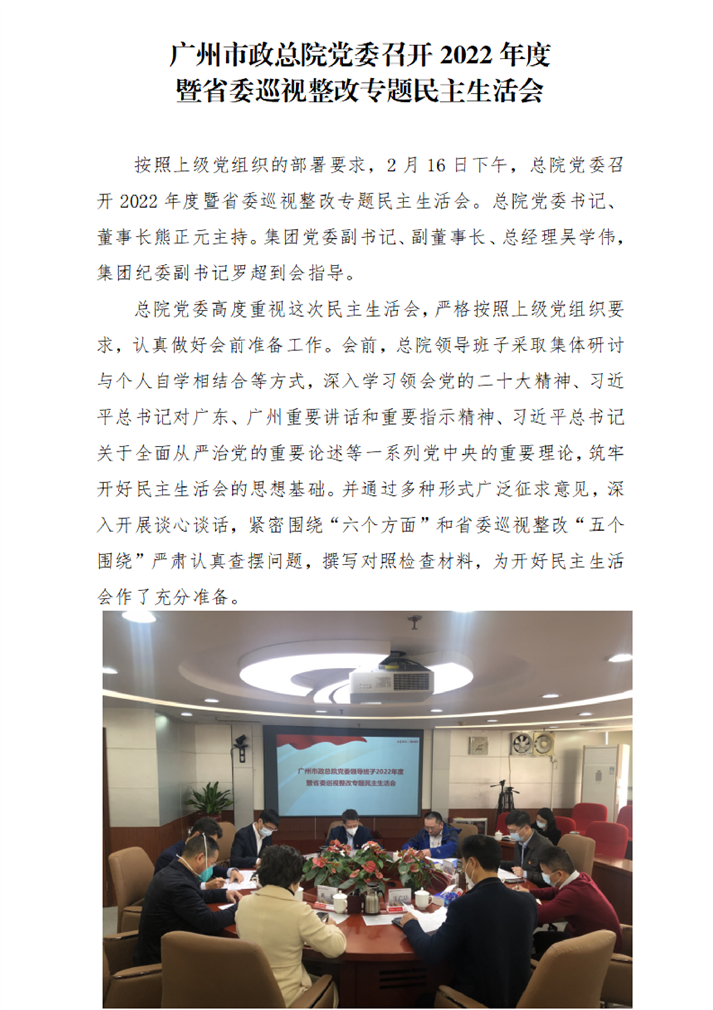 广州市政总院党委召开2022年度暨省委巡视整改专题民主生活会