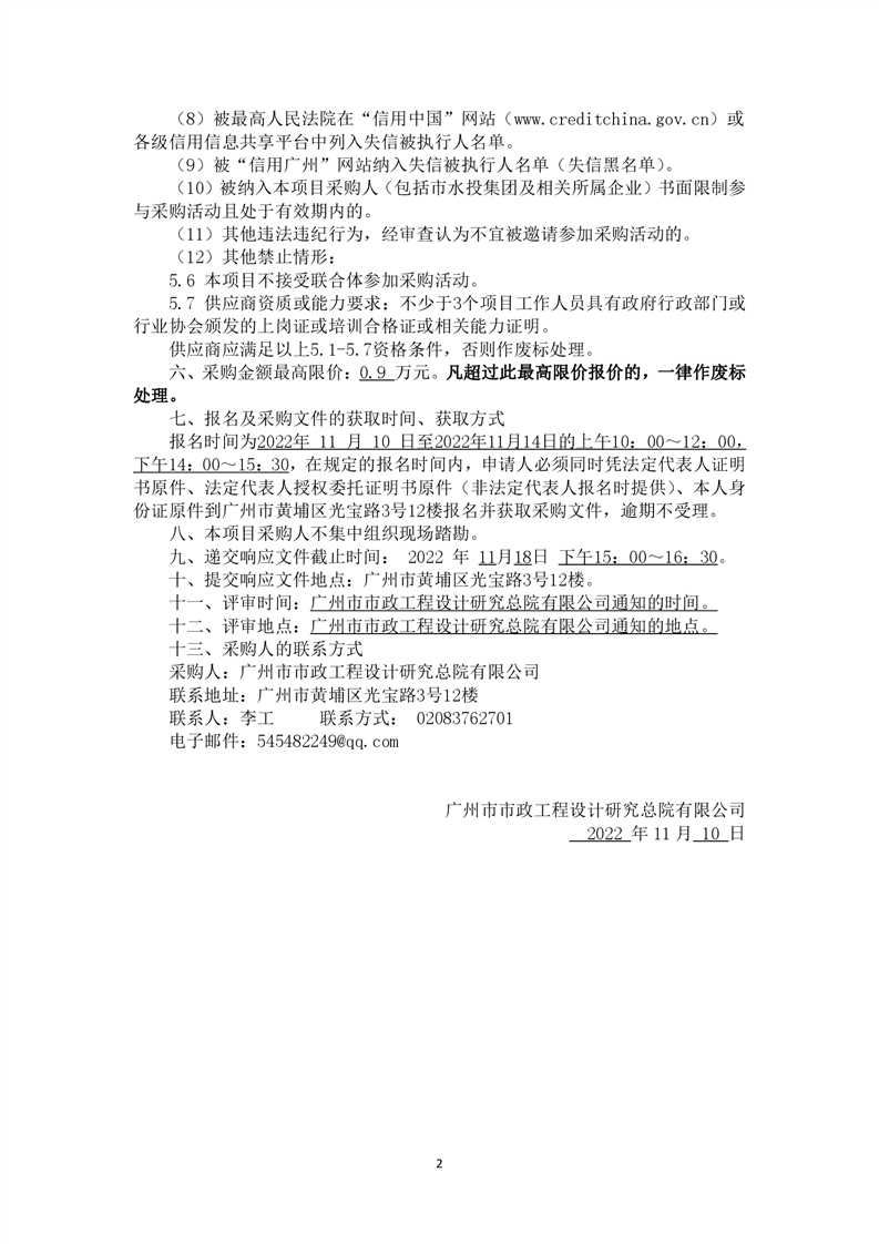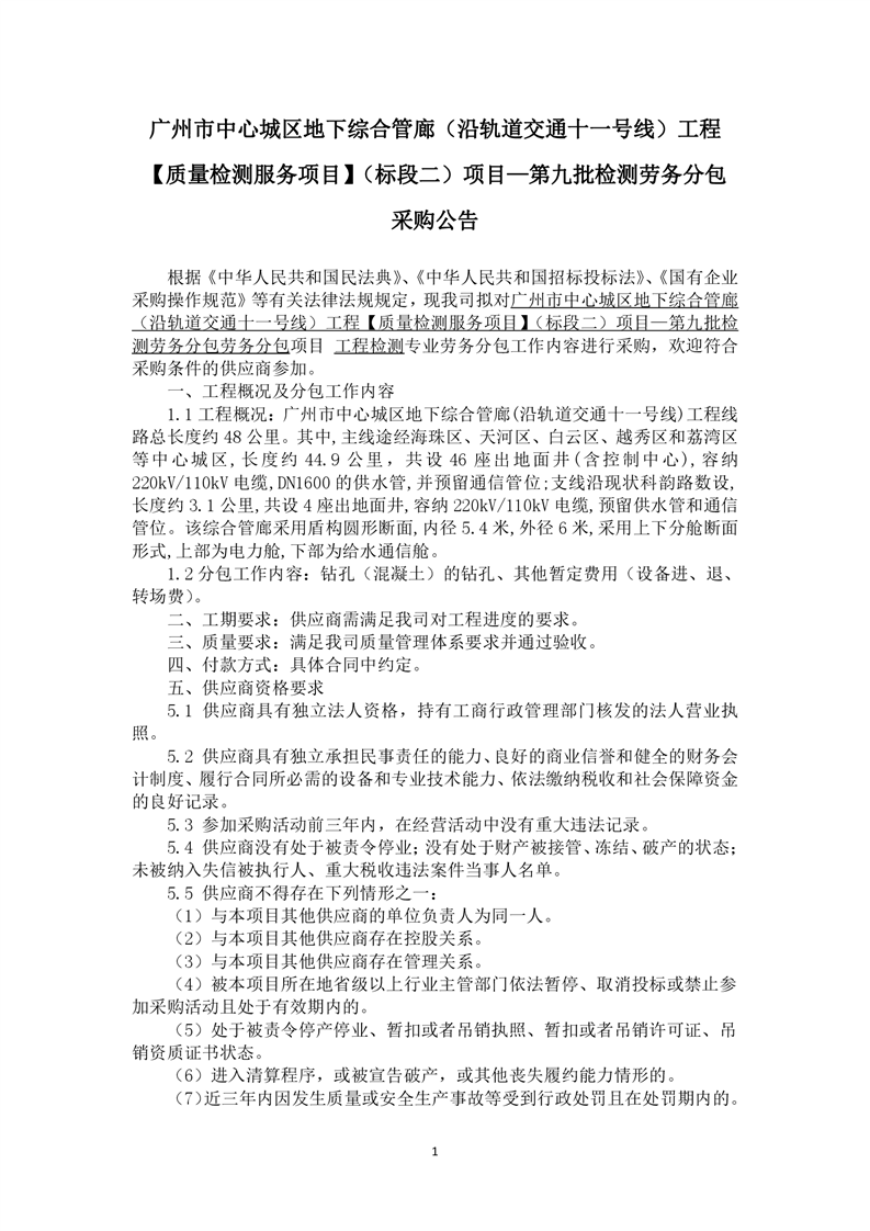 采购公告发布-广州市中心城区地下综合管廊(沿轨道交通十一号线)工程【质量检测服务项目】(标段二)项目—第九批检测劳务分包