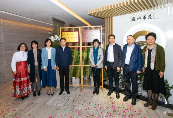 ▲为黄埔区图书馆广州市政总院“匠心书苑”服务点揭牌,从右至左分别:集团工会女职委主任李向真,广州市政总院党委书记、董事长熊正元,黄埔区图书馆副馆长陆锐梁,广州市总工会副主席王玉琴,集团党委副书记、工会主席黄金海,广州市总工会女职工部部长黎婉翎,集团工会副主席魏迎芳,总院工会主席黄曼