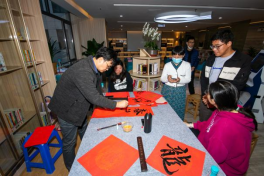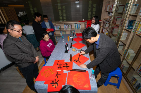 ▲现场职工书法家们挥墨迎春,展示“书香+书画”的文化魅力